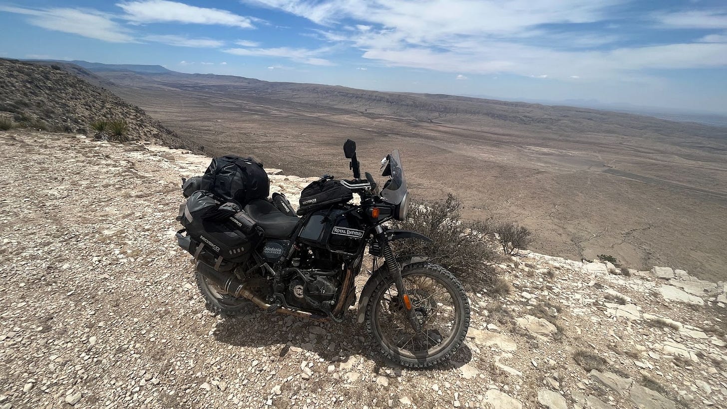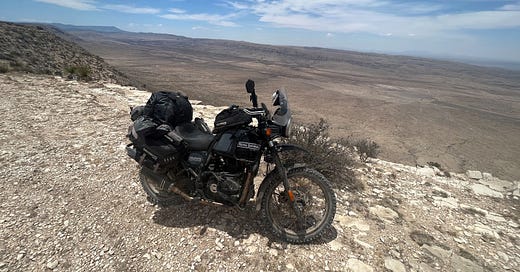 It took me through Roswell and I was interested to see what that was all about. I’m not sure what I expected, but there were a few alien signs and alien-themed stores, and it didn’t look all that interesting. I rolled on through, made it to Carlsbad, and fueled up to the tippy top. It’s 150 miles to the next fuel in Weed, but I’d heard that sometimes they don’t have gas at all. I should have a range of about 230 so I knew I’d be fine, and I have another 30 miles worth of spare fuel too. But still, knowing I’m fine doesn’t always make the fuel anxiety go away. I hit the road toward the start of the New Mexico Backcountry discovery route and stopped at Queen which is a one store down in the middle of Lincoln National Forest. I had a burrito and it was good - that’ll do me for the day. Ten miles further I finally came to the route itself and started to ride up the Guadalupe Rim.