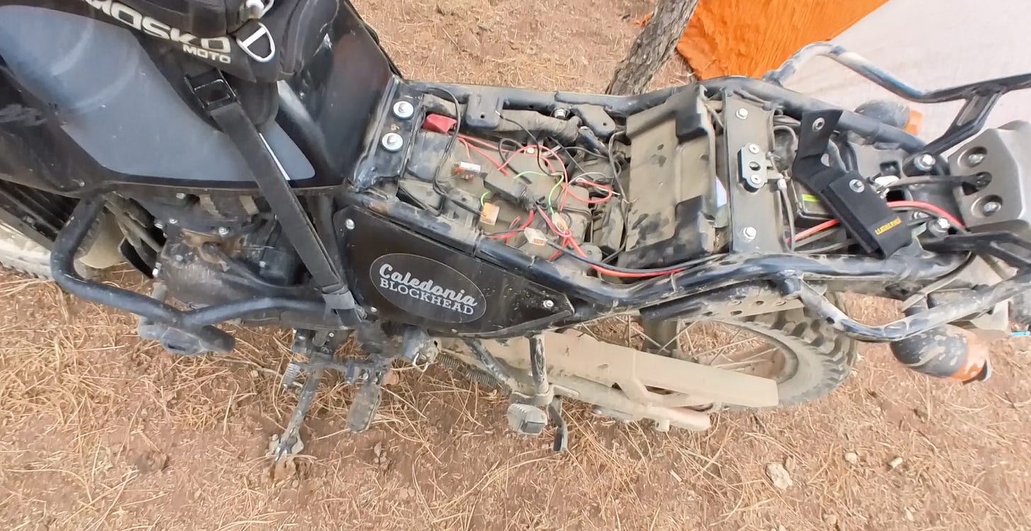 I found the problem. A connector unit that all the wires run into had completely disintegrated. Great. I don’t like dealing with electricity of any voltage. And because of that, electricity returns the favor and doesn’t like me either. I was unscrewing the red terminal and touched the frame and it arced. There’s now a little weld mark on my all-in-one tool. I rigged it up enough so I can get through tomorrow. But this is a bummer. I had things set up so that I could camp for as many nights in a row as I wanted to or needed to and I had a way to charge everything on the bike - including the laptop that I need to write this God damned report and download the footage. I’m not sure what I’m going to do.